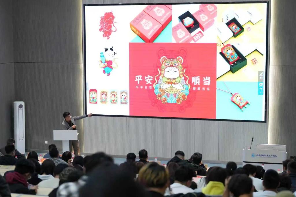 山东省家具协会会长韩庆生,山东新视觉数码科技有限公司产业学院副院长张峻豪,2007级优秀校友、济南宽窄文化传媒有限公司总经理李福磊,2020级优秀校友、邹平市委组织部靳世昌,从不同视角作主题报告。他们从行业发展、企业需求、校友实践等多元维度,为产业学院建设提供了宝贵的实践参考,既助力系部精准锚定产业需求、优化校企协同育人模式,也为学生的职业规划点亮了前行方向。