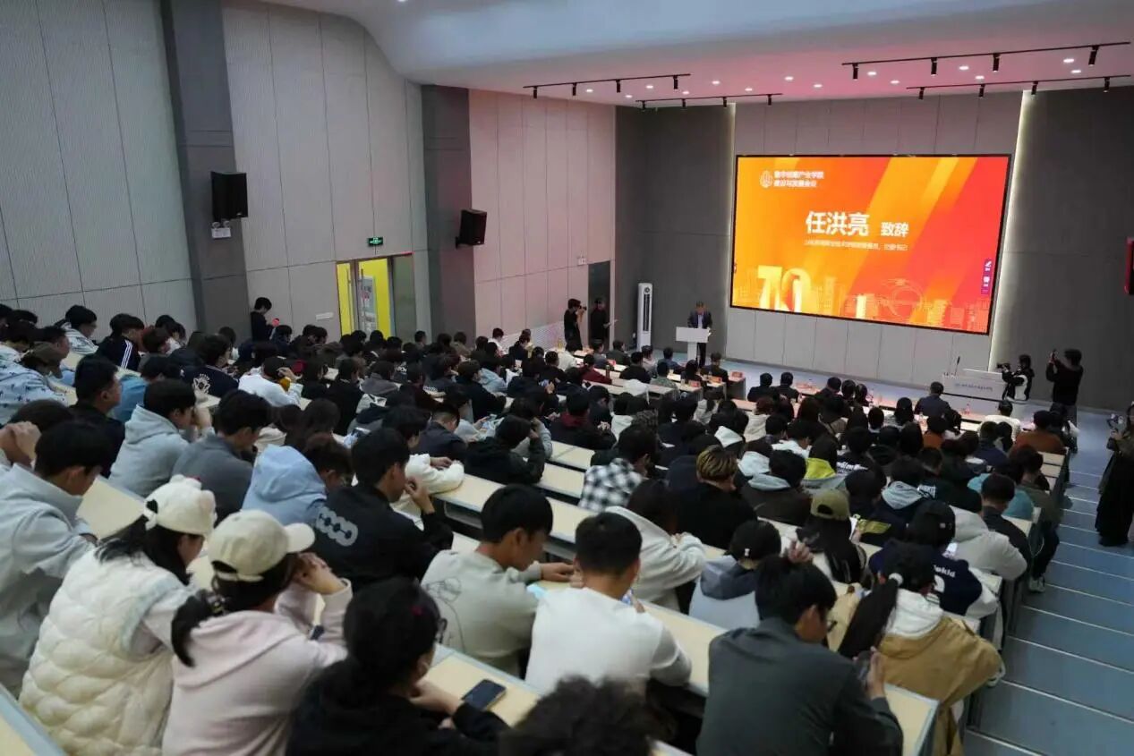 会议开场,学院党委委员、纪委书记任洪亮致辞。他回顾学校70年办学底蕴与成果,强调数字创意产业的战略地位,明确建设数字创意产业学院是系部传承办学特色、对接产业需求、深化职教改革的关键举措。