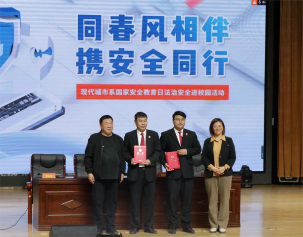 今年的4月15日是第十个全民国家安全教育日,为了进一步提高同学们的国家安全和法治安全意识,加强和规范安全管理工作,4月12日下午,现代城市系在报告厅开展了“同春风相伴,携安全同行”国家安全教育法治安全讲座,讲座邀请到长清区人民法院刑庭法官李虎、赵延振做安全教育主题报告,安全保卫处处长李宗茂、现代城市系党总支书记杨丽英出席了活动,活动由现代城市系党总支副书记刘文学主持。