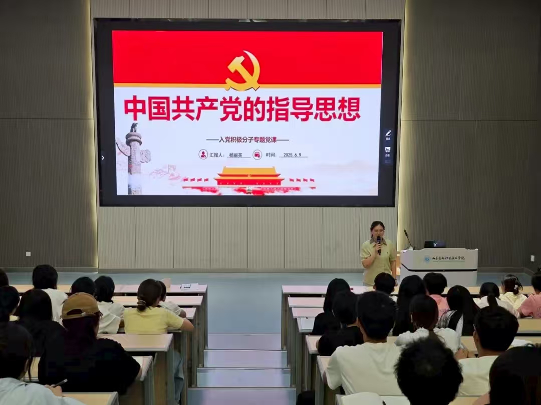 开班仪式结束后,杨丽英书记以《中国共产党的指导思想》为主题,给入党积极分子上了一堂生动的“党课”。杨书记强调,新时代青年应坚持学习与修养、知识与实践、志向与服务祖国人民相统一,将个人发展与国家命运结合,争做有理想、敢担当、能吃苦、肯奋斗的新青年。