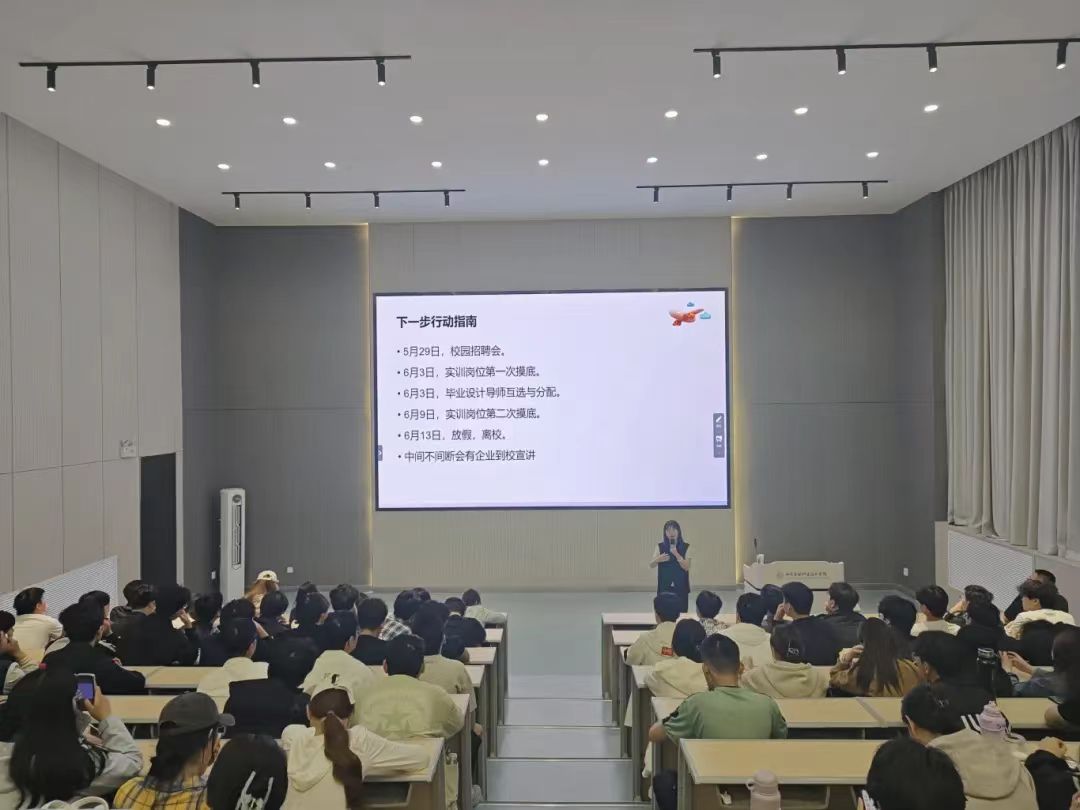 为深入贯彻职业教育产教融合育人理念,扎实推进实践教学体系建设,切实保障2023级全体学生实训实习工作能够高效且有序地推进落实,确保教学计划顺利执行与学生实践能力有效提升。5月23日,现代城市系在4108教室举行2023级学生实训实习动员大会。冯冲副主任面向2023级全体学生分批次做专题动员,通过三场系统性宣讲为即将踏上实训实习征程的学子筑牢思想根基。