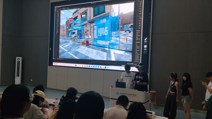 虚拟现实技术应用专业由教研室主任贾兆颍、专任教师刘鸿赟主讲,贾兆颍介绍虚拟现实技术应用在山东省教育厅专业考核中,位于全省第三名,专业建设成果丰硕。宣讲会现场设置体验环节,刘鸿赟邀请在场学生亲手操作 VR 设备,亲身体验虚拟现实技术带来的奇妙交互感受,进一步加深了对专业的认知与兴趣。