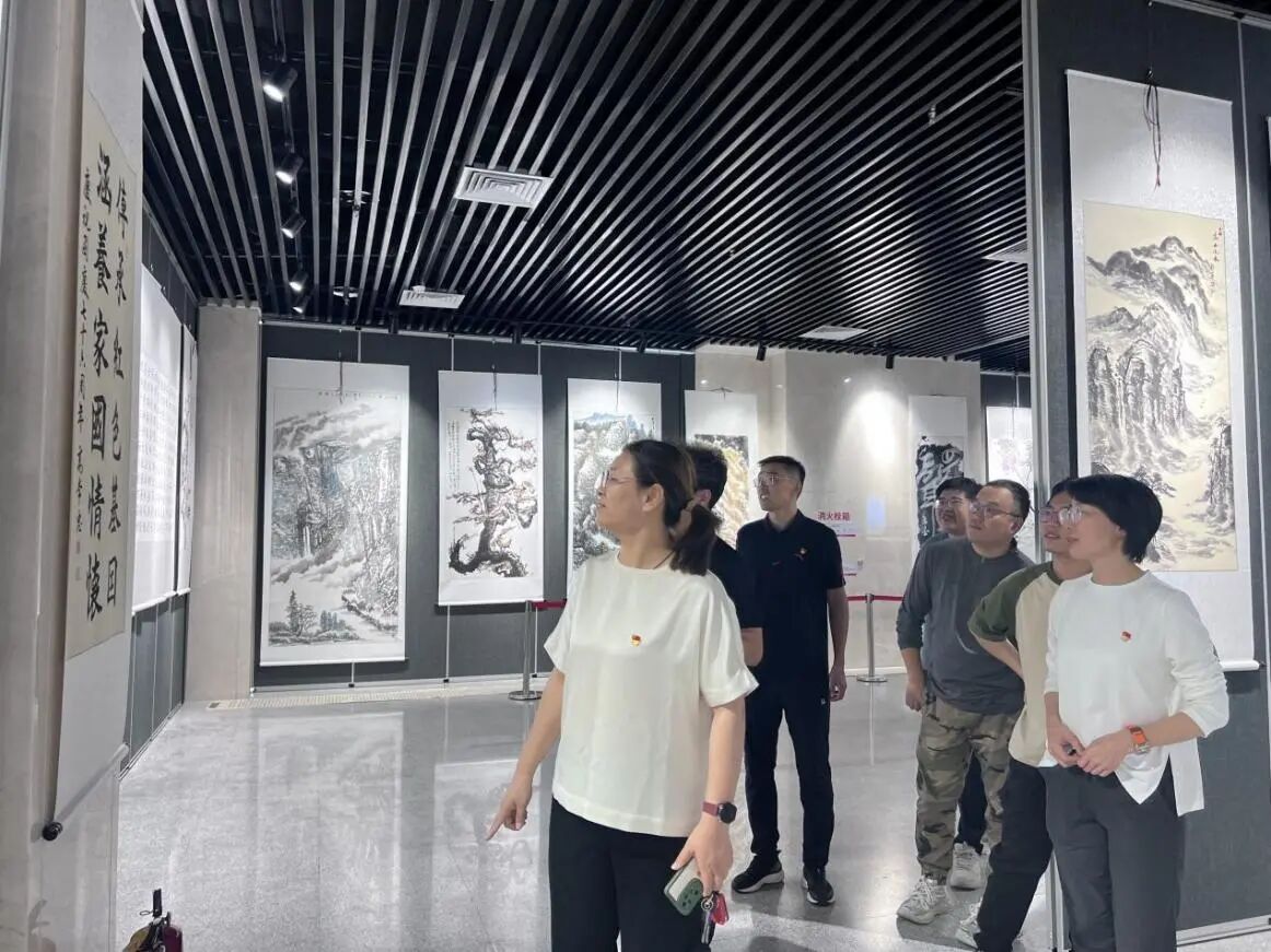 后续全体教师转往长清市文化馆,参观"庆祝中华人民共和国成立76周年"书画展,教师们在一幅幅书画前驻足欣赏,通过艺术的形式重温奋斗历程,涵养家国情怀。