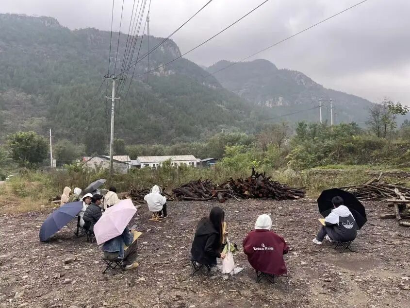 此次实践以“回归自然、锤炼技艺”为主题,旨在引导学生从数字设计转向现实观察,提升造型基础与美学素养。学生们每日清晨便携带画具深入山野,在溪畔、村落与柿林中捕捉自然光影与乡土风情,通过速写训练强化手绘能力与观察力。