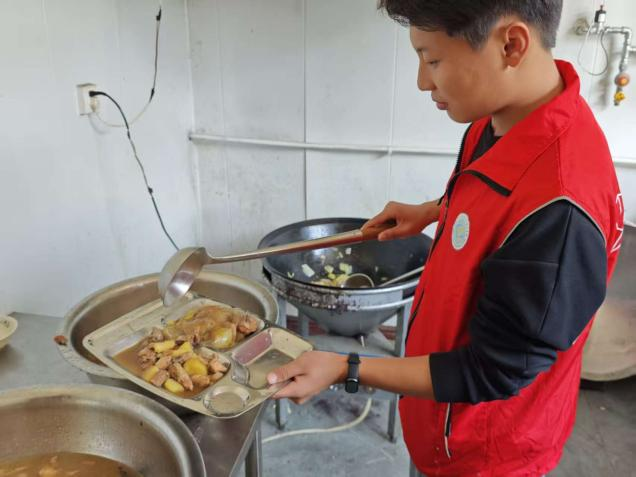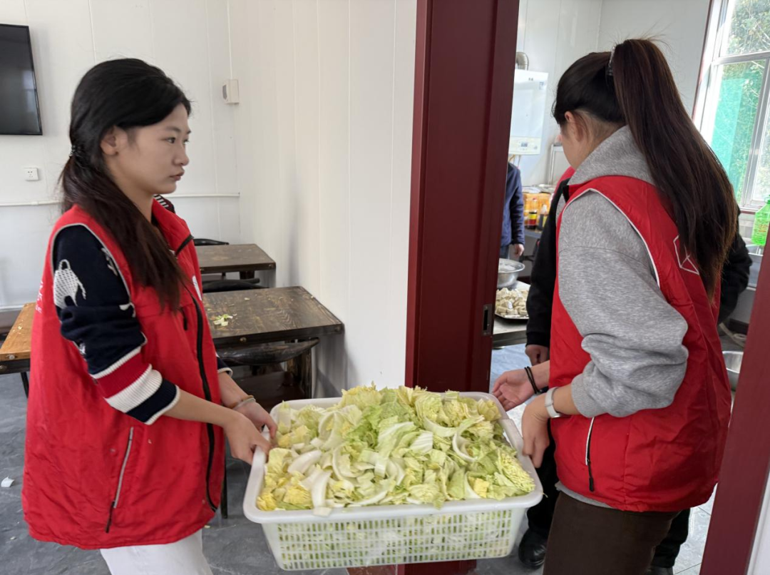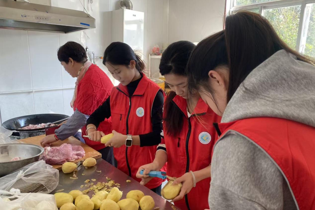我系青年志愿者以实际行动诠释“奉献、友爱、互助、进步”的新时代内涵。他们走进村庄,为让老人们吃上健康美味的餐食,协助村庄人员精心准备暖心午餐。从餐厅的细致清扫,到餐具的严格消毒,再到菜品的精心备制,全程亲力亲为。